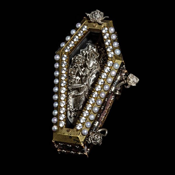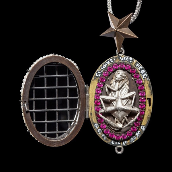 I learned stone setting from my friends and teachers. I owe these master jewelers and metalsmiths a lot! They were always so willing and open to share the methods they have perfected over a lifetime. Stone setting has been a fascinating and historical way of embellishing my creations. In particular, the reliquary jewelry that I have been working on utilizes a lot of stone setting techniques. It allows me to frame certain focal points of the design in an illuminating brilliance of glimmer and light.